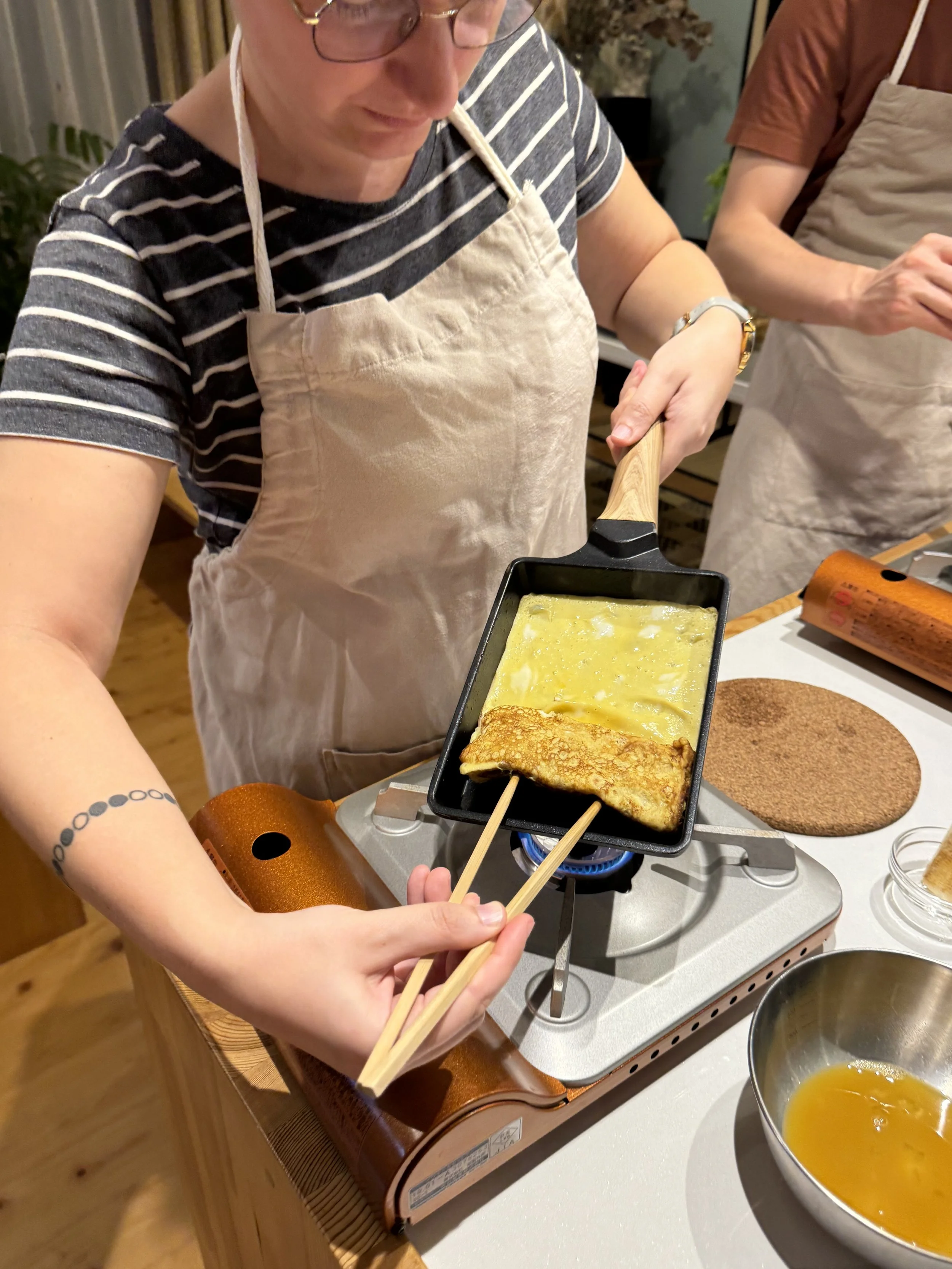 Making delicious tamagoyaki (Japanese omelette)…